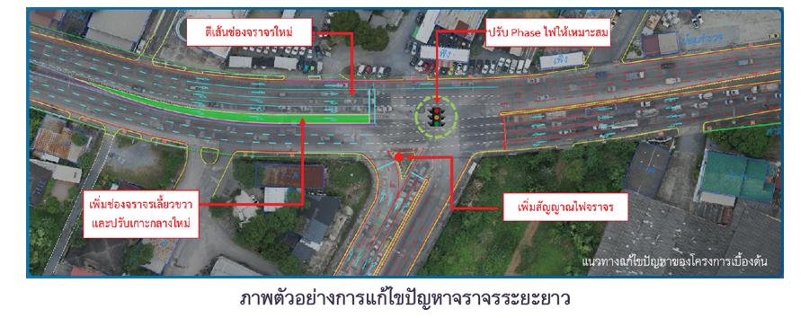 การออกแบบวิธีการแก้ไขปัญหาจะนำข้อมูลจากการสำรวจและรวบรวมข้อมูลมาจัดทำแบบจำลองการจราจรเพื่อจำลอง สถานการณ์จราจรปัจจุบัน จากนั้นออกแบบทางแก้ไข เช่น การปรับปรุงรอบสัญญาณไฟจราจรแบบตอบสนองต่อปริมาณรถ การปรับปรุงเรขาคณิตของทางแยก หรือการเพิ่มช่องทางเลี้ยวขวาเฉพาะ เป็นต้น โดยพื้นที่ศึกษาโครงการที่ไม่สามารถแก้ไขได้ด้วย โครงการระยะสั้น จะพิจารณาความเป็นไปได้ในการสร้างทางลอดหรือทางยกระดับรวมถึงการก่อสร้างทางเลี่ยงเมืองใหม่ ซึ่งเป็น โครงการระยะยาว เพื่อลดความล่าช้า เพิ่มประสิทธิภาพของโครงข่าย และเพิ่มความปลอดภัย