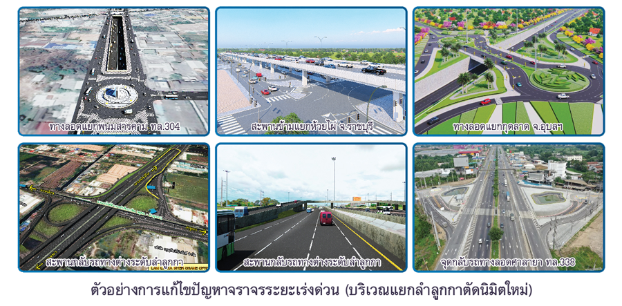 แนวทางการแก้ไขปัญหาในระยะเร่งด่วน จะพิจารณาภายใต้เงื่อนไขสำคัญ คือ ใช้พื้นที่เขตทางเต็มประสิทธิภาพ สามารถ นำไปปฏิบัติ และแก้ไขปัญหาได้จริงภายในกรอบเวลาที่จำกัด โดยจะพิจารณาในเรื่องของการปรับปรุงกายภาพเบื้องต้น ได้แก่ การขยายผิวจราจร การติดตั้งหรือปรับปรุงระบบสัญญาณไฟจราจร การติดตั้งป้ายจราจรต่าง ๆ การปรับวงเลี้ยว การปรับเกาะกลาง การปรับปรุงระบบและอาคารระบายน้ำ รวมถึงการบริหารจัดการด้านจราจร หมายถึง การเพิ่มประสิทธิภาพของจุดปัญหา โดยการบริหารจัดการอุปกรณ์ด้านจราจร ควบคุมพฤติกรรมผู้ขับขี่ และบังคับใช้กฎหมาย เช่น การปรับรอบสัญญาณไฟจราจร การจัดความสมดุลของช่องทางจราจร ห้ามเลี้ยว ห้ามจอด เป็นต้น
