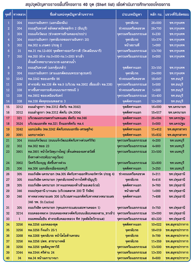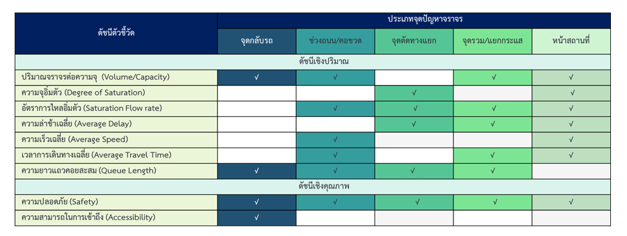 ดัชนีตัวชี้วัดประสิทธิภาพจุดปัญหาจราจร